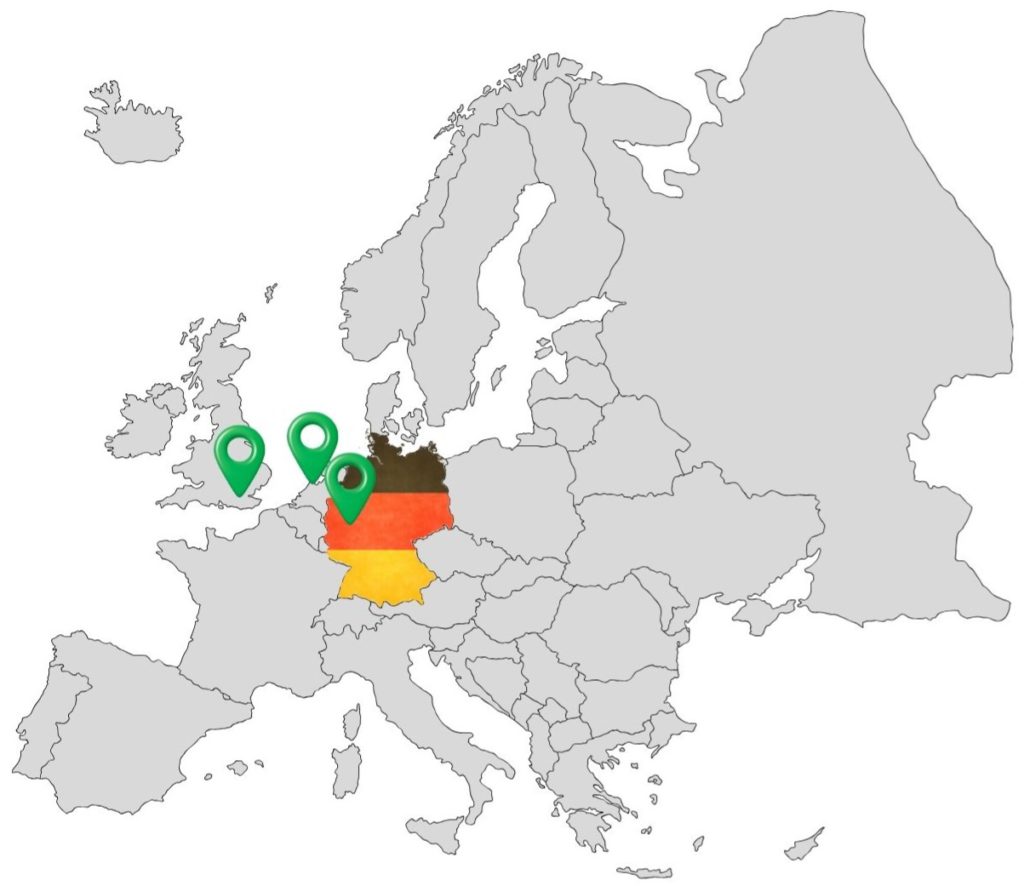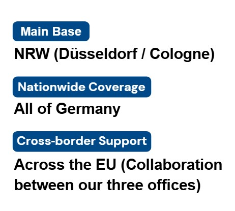 We support recruitment and HR needs across NRW (Düsseldorf and Cologne), all of Germany, Eastern Europe, Belgium, and France.